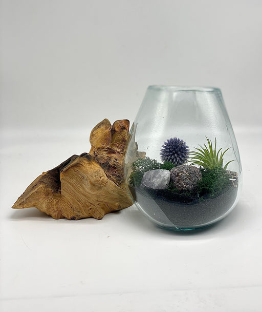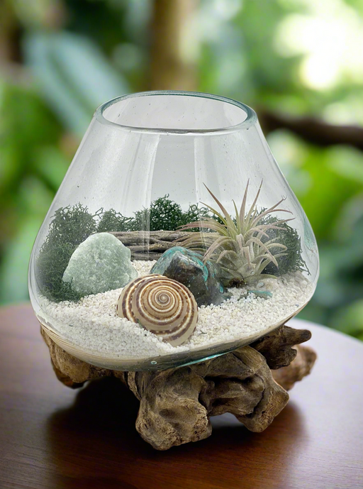 View full detailsMystic Forest Air Plant Terrarium - Hand Blown Glass on Gamal Wood with Garnet Quartz, Echinop, and Cholla Wood - 6×6” for Any Occasion