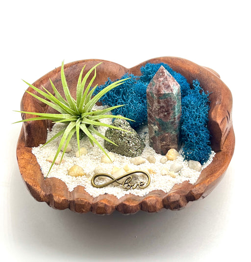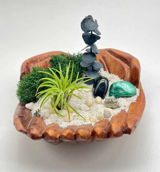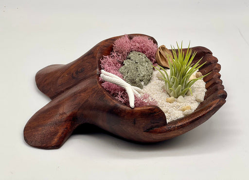 View full detailsMystical Air Plant Holder | Hand Carved Wood Display with Pyrite, Peacock Rock & Black Sand | Crystal Decor | Nature Inspired Gift