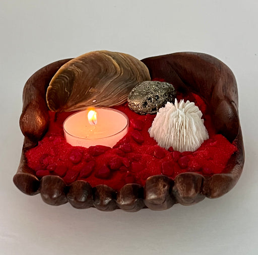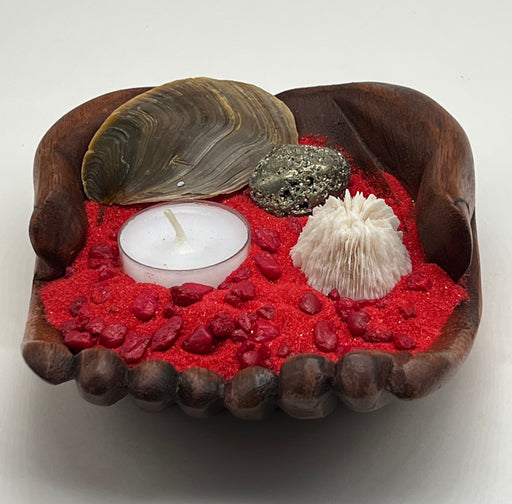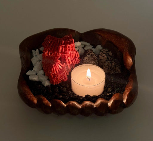 View full detailsOcean Meets Earth Candle Holder – Wooden Hand Bowl with Red Coral, Volcanic Rock, Black Sand | Coastal & Nature Decor Gift