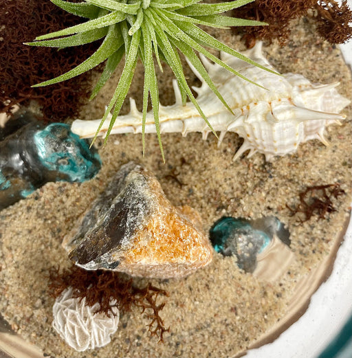 View full detailsPlant Lovers Gift - An Air Plant Beach Theme Holder with Precious Natural Elements such as Malachite, Pyrite, Green Goldstone, and more!
