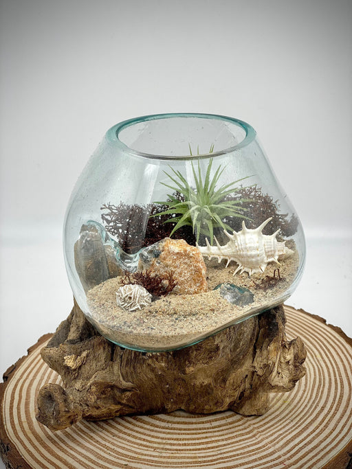 View full detailsSea Scape Beach Air Plant Terrarium: Hand-Blown Glass Kit with Natural Wood Base, Table Centerpiece for Coastal Home Decor