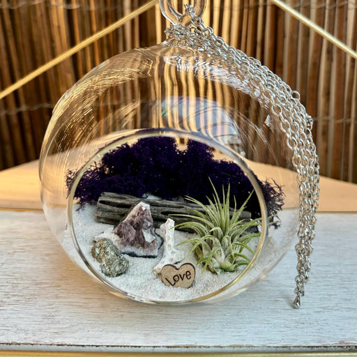 View full detailsAmethyst Hanging Air Plant Terrarium - DIY Gift for Plant Lovers - Desktop Decor with Hanging Chain - 5x5